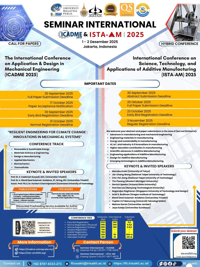 Full Paper Submission: 17 October 2025 (ICADME) / 20 October 2025 (ISTA-AM)