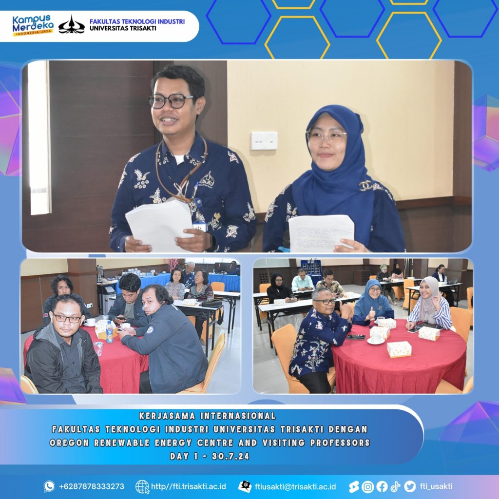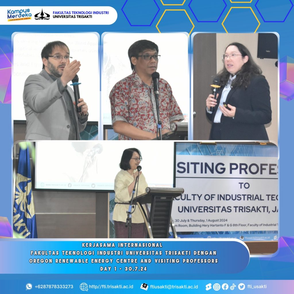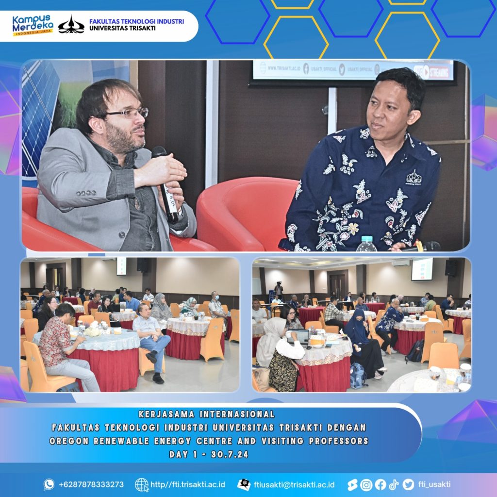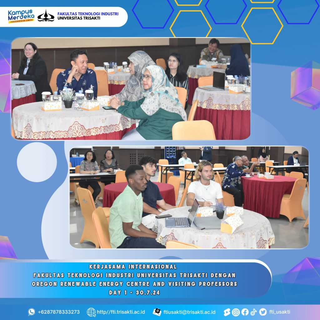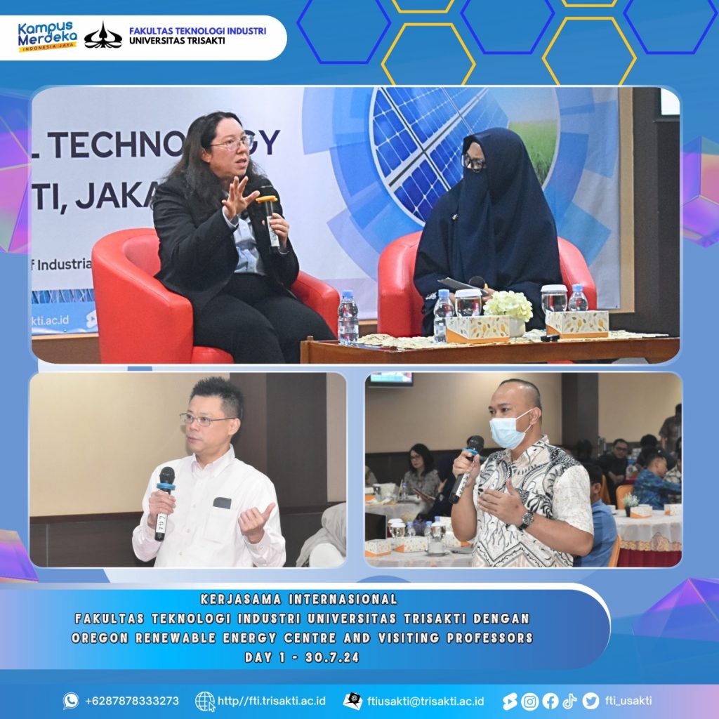 In order to establish and enhance international cooperation networks, on Tuesday, July 30, 2024, FTI Usakti held an International Guest scientific event and inaugurated a research and development collaboration on nanotechnology with the Oregon Renewable Energy Center (OREC). The public lecture, held at the FTI Usakti Auditorium, featured two academics from Arizona State University, Dr. Derrick Speaks and Dr. Rachel Speaks. The public lecture was presented in a hybrid format (online and offline) and was attended by researchers and academics from Trisakti University and Bina Nusantara University.